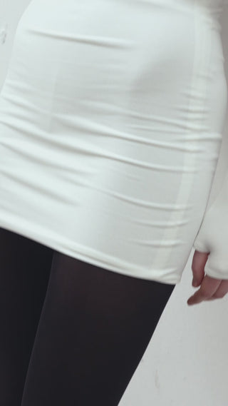 The NANCY Dress redefines classic elegance with a playful edge. Crafted in brilliant white, it features an off-the-shoulder silhouette, thumbhole cuffs, and delicate faux fur accents, creating a look that is effortlessly chic and full of personality.